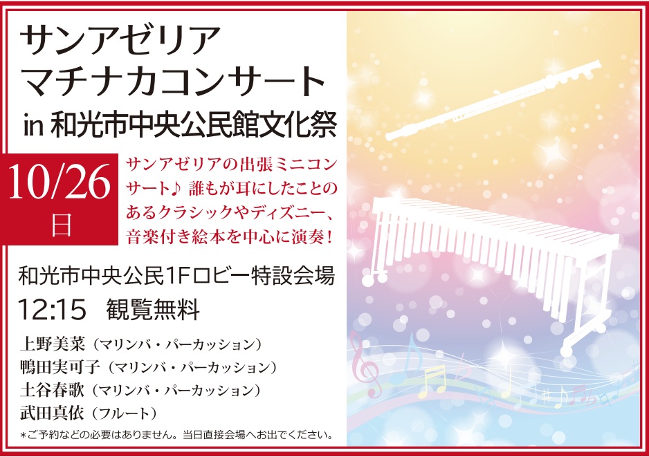 演奏曲名(予定):アンダー・ザ・シー 剣の舞 パンどろぼう(オリジナル音楽付き絵本(北條歩夢作曲)) 情熱大陸 ほか