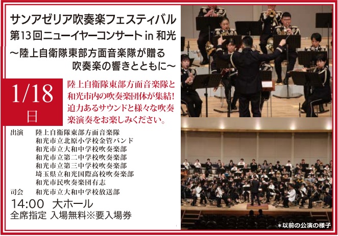 和光市内の小中高をはじめとする吹奏楽団体と陸上自衛隊東部方面音楽隊が集結!